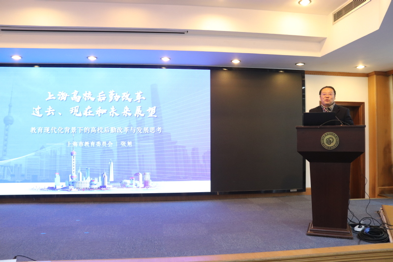 本次研讨会共有两个阶段。第一阶段为主题培训。张旭首先作题为“上海高校后勤改革——过去、现在和未来展望”的辅导报告。报告分别从“上海高校后勤社会化改革发展情况”“上海高校后勤发展现状和问题分析”“构建现代化新型高校后勤保障体系”“‘十四五’上海高校后勤发展主要任务”“上海高校后勤改革发展相关政策解读”等五方面,介绍了构建新型高校后勤保障体系的基本思路和主要任务。他指出,二十年来,上海高校后勤改革成效显著,但仍存在一些突出问题和薄弱环节。面对新形势、新问题、新矛盾、新需求,后勤应从构建更高质量后勤保障体系、建立更高标准生态绿色校园和开拓更高水平服务育人新阵地等三方面找准主要任务和实施路径。他强调,“十四五”时期上海高校后勤发展的重点任务有:要加大对高校后勤改革和发展事业的统筹,优化后勤“管办评”机制,建立“大后勤”管理体制和运行机制,解决重点环节和重点问题,出台相应的投入保障机制,统筹校内外“两个市场”和“两个资源”,全力推动智慧后勤规划和建设,推进教育资源布局调整与基本建设保障项目建设等。他强调,通过构建现代化新型高校后勤保障体系,要让师生获得感成色更足,让师生安全感更有保障,让师生幸福感更可持续!